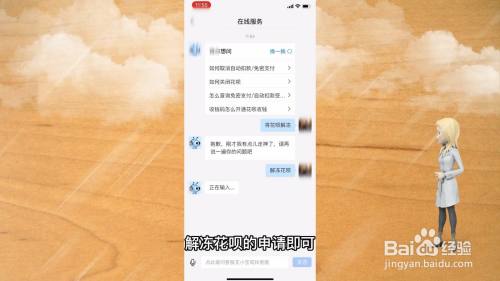 花呗被冻结可以通过打开支付宝APP,点击在线服务,在对话框中向客服发送解冻花呗的申请即可。具体操作方法如下:
