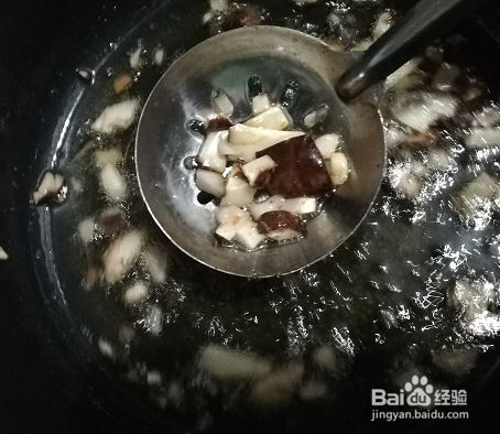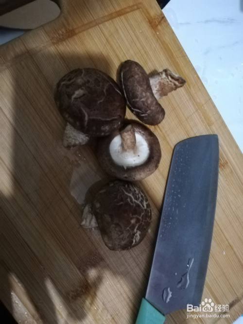 把油炸好的香菇放入装芹菜的容器里,加入胡椒粉搅拌均匀