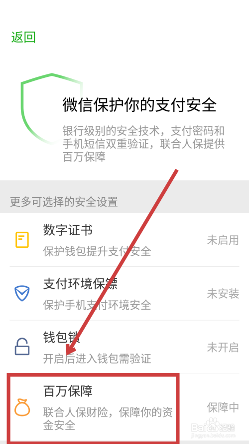 然后在界面下方找到【百万保障】,点击进入。