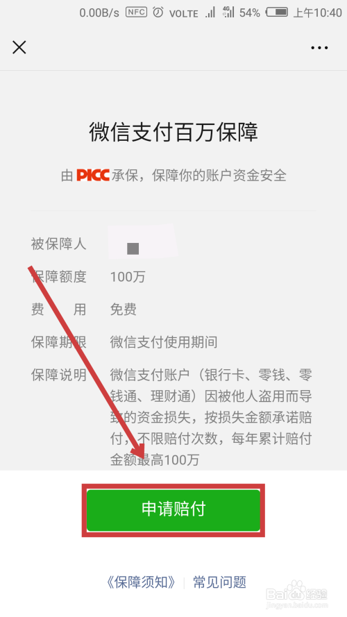然后选择【申请赔付】,点击进入。