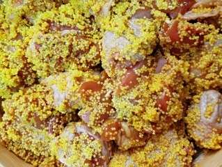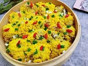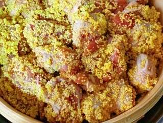 鸡腿新吃法,蒸的鸡腿特别嫩,配上小米更是一番滋味。