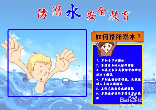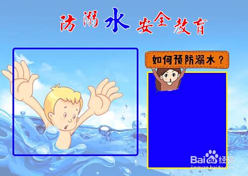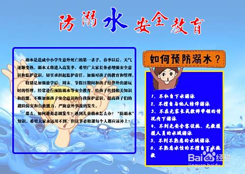 第二步:在画报的正上方写上“防溺水安全教育”几个字,字体可以选择具与主题相符的颜色、例如红色和蓝色等,文字可以改变一下位置,看上去没那么呆板。