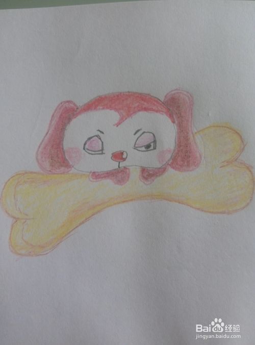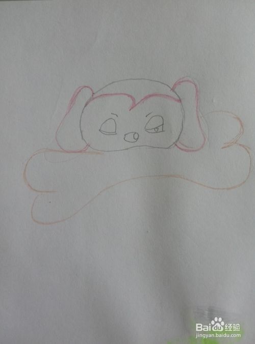 沿着小狗的下巴,画出一根横放着的大骨头。