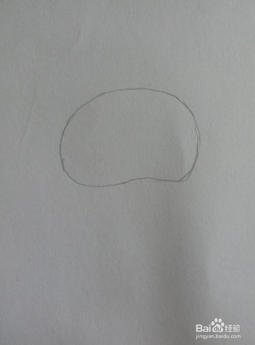 在白纸的中上位置用铅笔画上一椭圆,底部略平,这个作为小狗的脑袋。