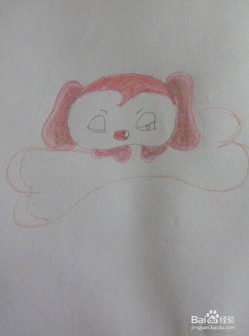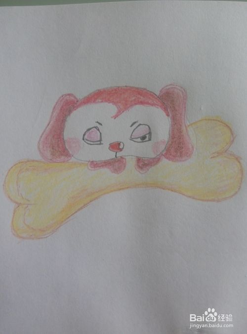 在小狗的下巴处画出两个小手,像趴在骨头上一样。