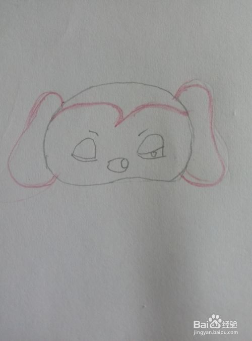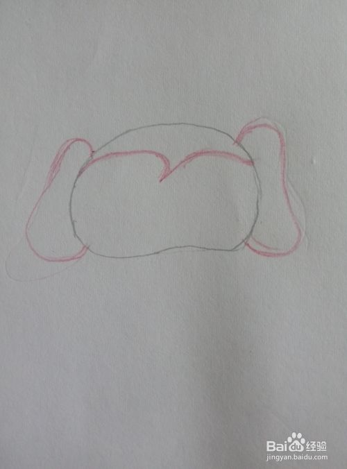 用红铅笔画出头部的毛发分界处和两边的耳朵。