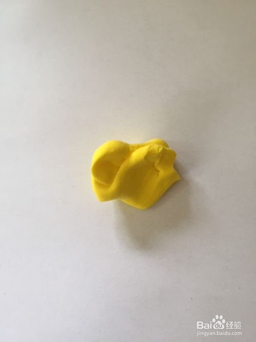 取出黄色的超轻粘土,揉搓成球,将一端捏出一个角。作为身体。