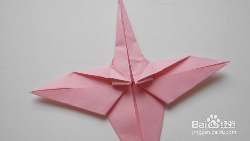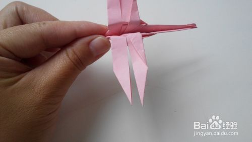 将剪开的四个小角再往里折一点点,如图,一只美丽的蜻蜓就折好了。
