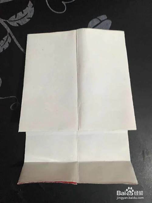 第二步 折叠完之后竖起来再从下向上对折 再掀起来上层向下对折 然后取开翻过来 拿起中间的折痕向下与最下面的折痕对折