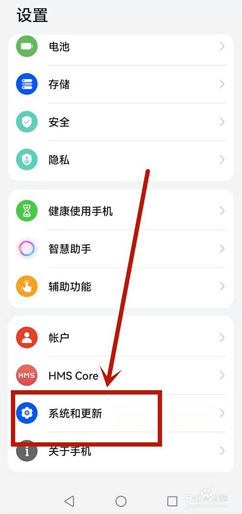 在手机设置界面,滑动屏幕后点击一下系统和更新选项。