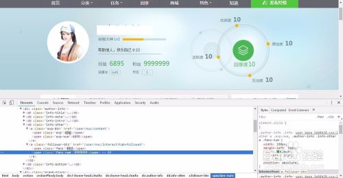 该经验数量和粉丝也是一样的,将鼠标移到经验数量哪里去,然后点击鼠标右键再点击【审查元素】进去修改。