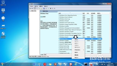开始→运行→输入:services.msc→确定,打开服务,如果,服务中没有Windows Time(时间服务)。那就要设法先注册该服务。