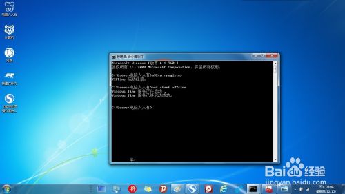 在命令提示符窗口输入注册时间服务的命令(按回车执行):