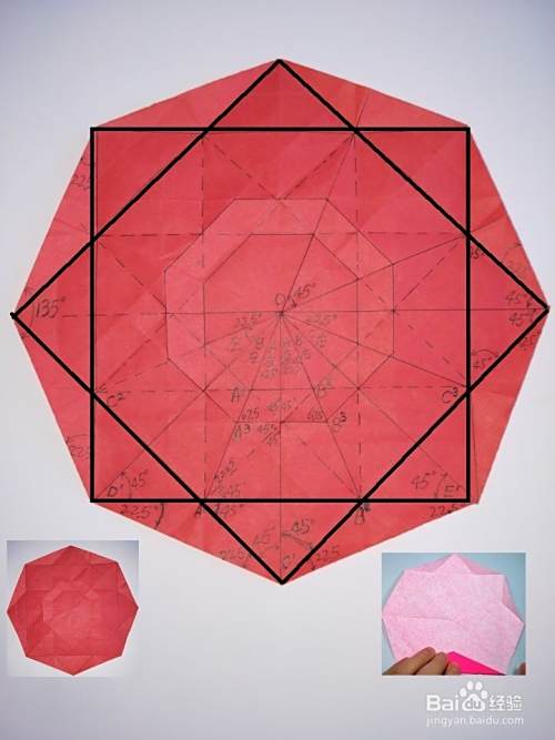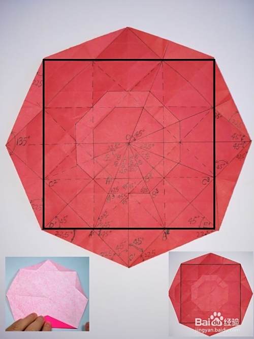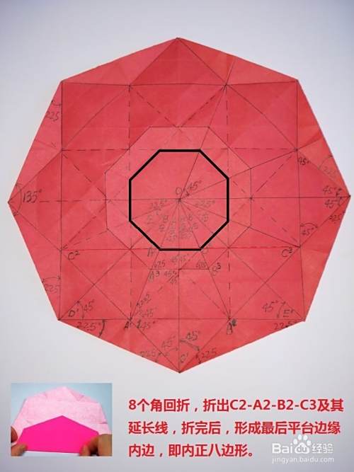 再按图形折出内部正八边形边圈。(即内部粗黑线围成的正八边形框)
