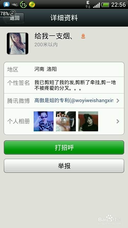 发打招呼的用语需要平谈却有新奇(神秘感),只有寂寞无聊的女人才去使用附近的人,且公布地理信息。至少证明她在当下是寂寞的,或有心事,可看看她的个人签名,顺着抓着她当下的状态进行正确的反馈,她就是理你的。自然成为聊天好友了。