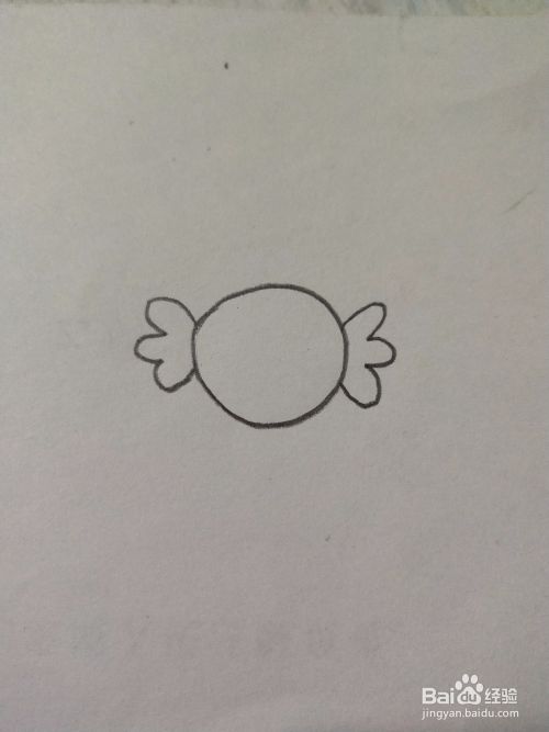 如图,首先画出糖果的形状,圆圆的。