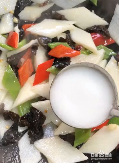 出锅前水淀粉勾芡,翻炒均匀即可出锅。