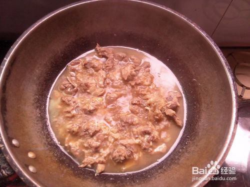 开火放油,稍热后将入好味的排骨倒入锅内炒至肉变色。往锅内倒入适量的水,盖上锅盖。