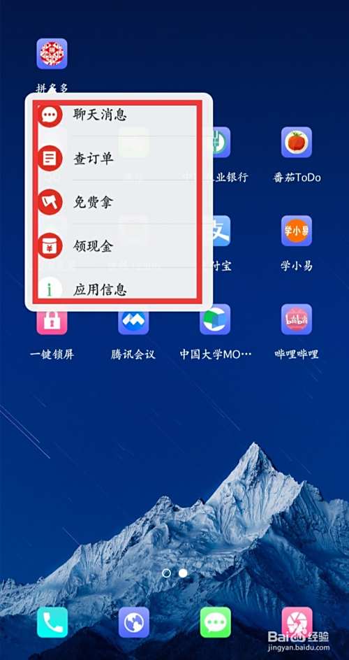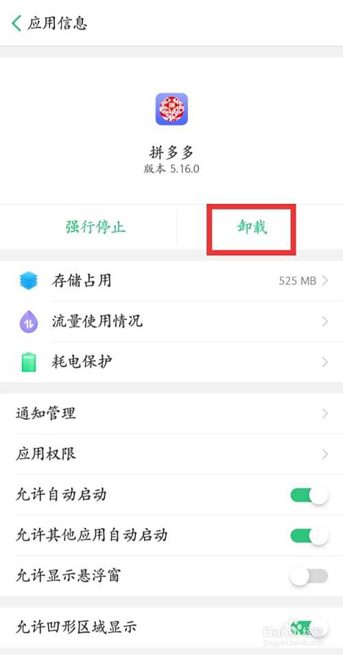在手机应用界面长按“拼多多”,出现如图界面,无常规“卸载”选项
