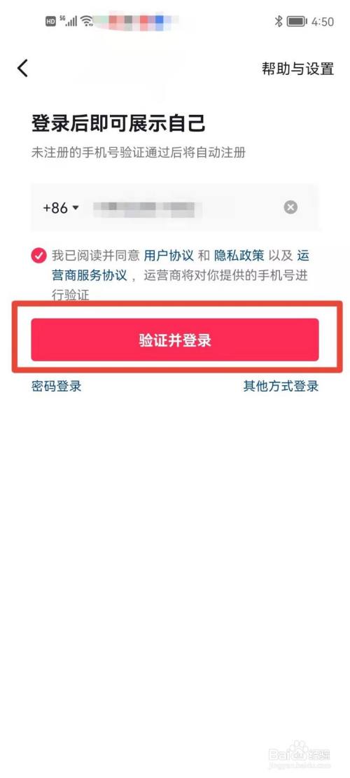 点击“验证并登录”,输入验证码,点击“登录”即可。未注册的手机号验证通过后将自动注册。