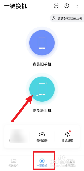 打开oppo手机上的互传,选择一键换机,点击我是新手机。