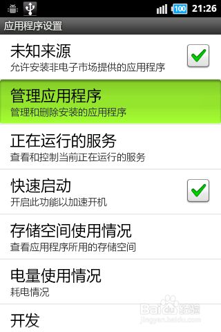 当手机内存空间不足时,最直接最简单的方法就是将部分安装在手机内存中的程序卸载掉。具体卸载方法:依次点击“设置”→“应用程序”→“管理应用程序”。