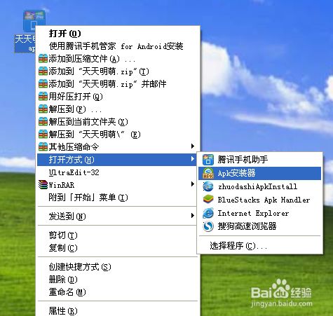 右击要安装至手机中的APK程序,从弹出的菜单中选择“打开方法”,并选择相应的安装器进行安装,在弹出的安装程序界面中,勾选“安装至SD卡”即可。