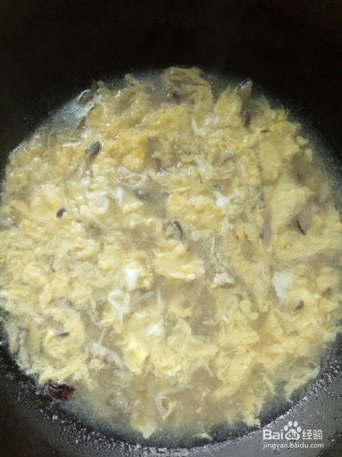 等到开锅后,把打好的鸡蛋液淋在汤的表面,煮至成块,放入适量的鸡粉关火搅拌均匀即可。