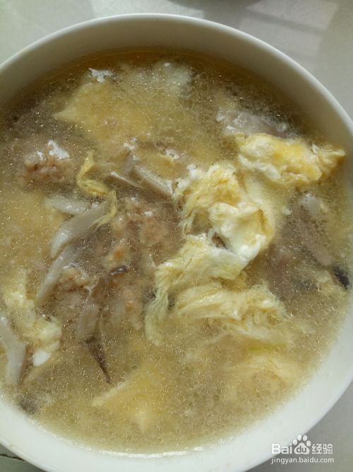 把煮好的秀珍菇肉沫汤盛出即可食用了。