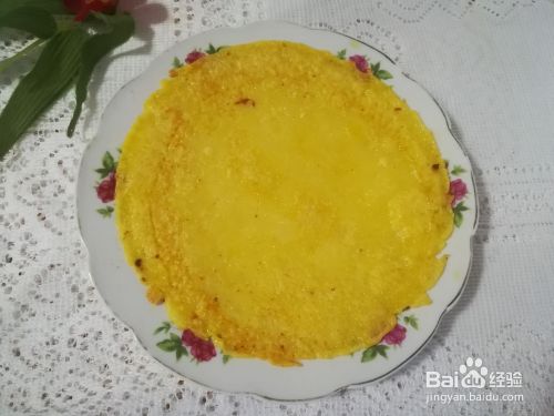 等面饼两面全部煎成金黄色后,铲出放入盘子里,这样一张又香又软的玉米饼就做好了。
