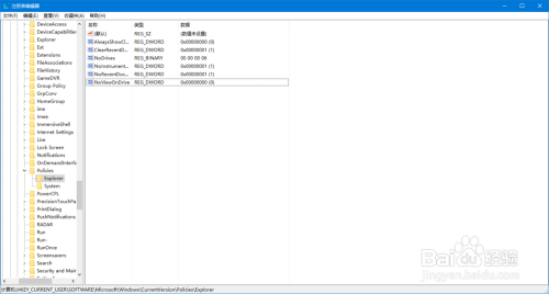 选中DWORD值“NoViewOnDrive”(没有则新建)。