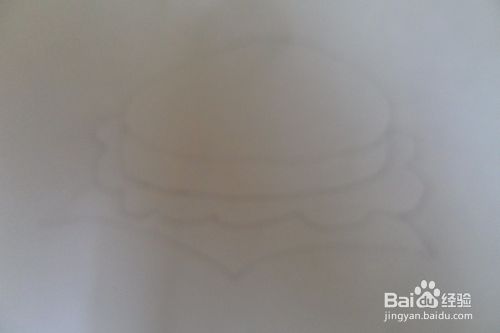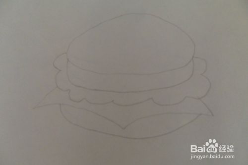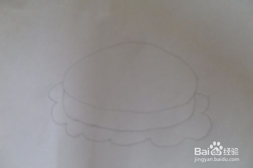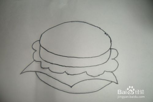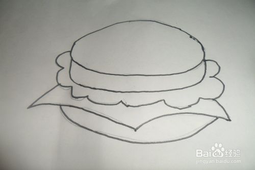 先用铅笔在白纸上轻轻画出汉堡包的圆形面。