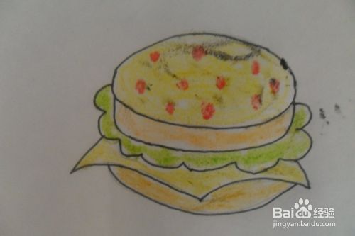 汉堡包是小朋友们很喜欢吃的东西。下面简单来画一个大汉堡。