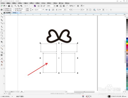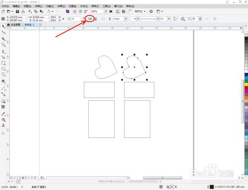 点击【选择工具】选中图示图案并进行拉动复制,调整好图案副本的位置后,将两个图案的【轮廓宽度】设置为:5(如图所示);
