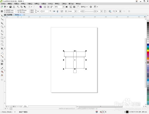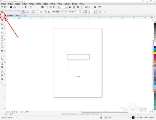 点击【选择工具】选中图示两个横向矩形图案后,点击【合并】将两个图案合并为一体。完成后,选中所有图案,点击【移除前面对象】将前面的竖向矩形图案部分移除(如图所示);