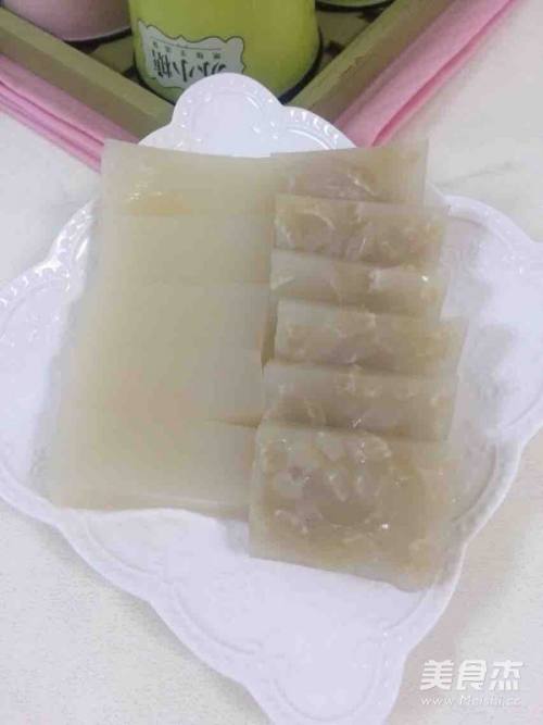 9熬制肉皮软烂,用筷子夹住就会断掉,汤汁粘稠就可熄火,倒入盆中冷却后放入冰箱保鲜层,第二日改刀即可食用
