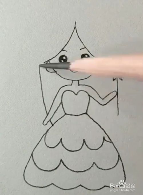 给裙子来个简单的装饰,画出小仙女手里的魔法棒。