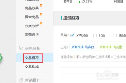 进入经营分析后,找到交易分析中的“交易概况”。
