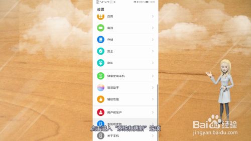 1、首先打开华为手机自带的设置APP,滑动界面,点击进入“系统和更新”选项。