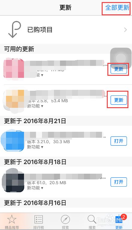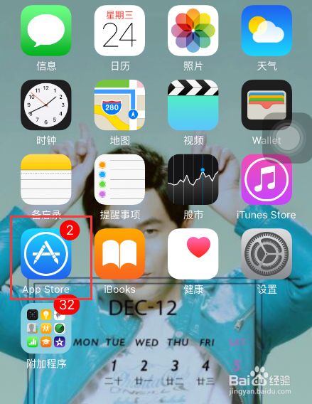 找到你手机里的“APP store”,通常在屏幕首页,可以看到它的右上角有个“2”,说明有2个可更新的软件了。