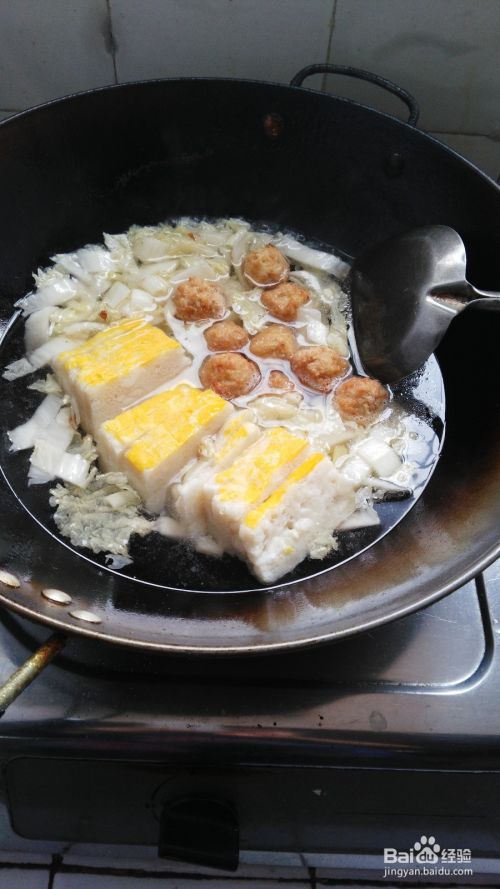 加入适量水,然后加入备好的鱼糕和丸子;