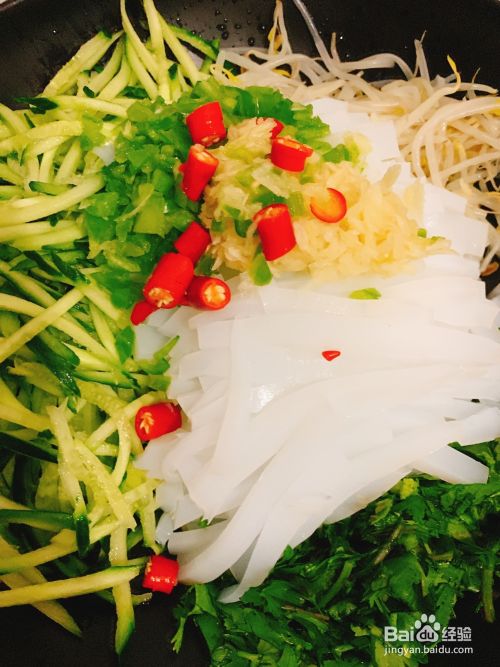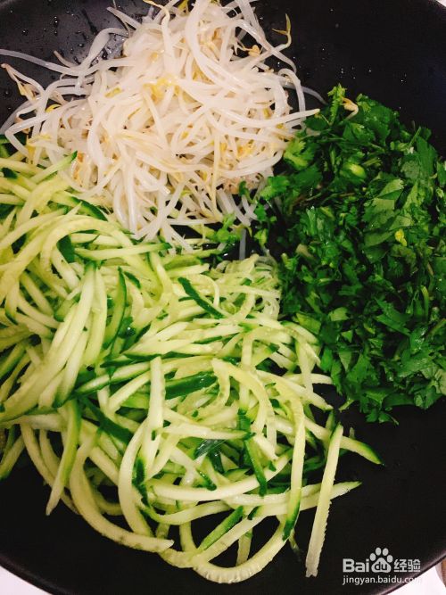 豆芽用开水煮开,冷水洗净,芫荽切块,黄瓜切丝,备用