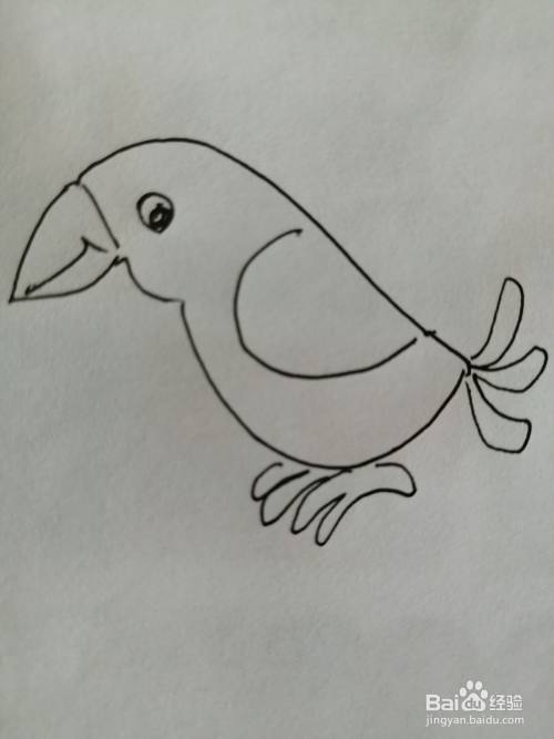 第七步,最后把可爱的小鸟的小尾巴画完整。可爱的小鸟就画好了。