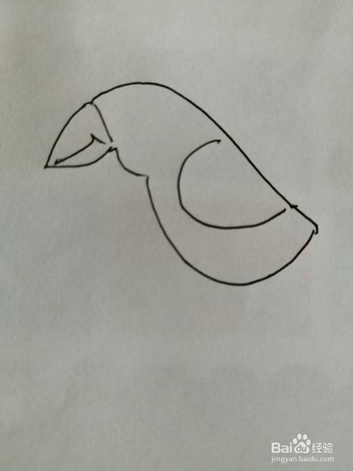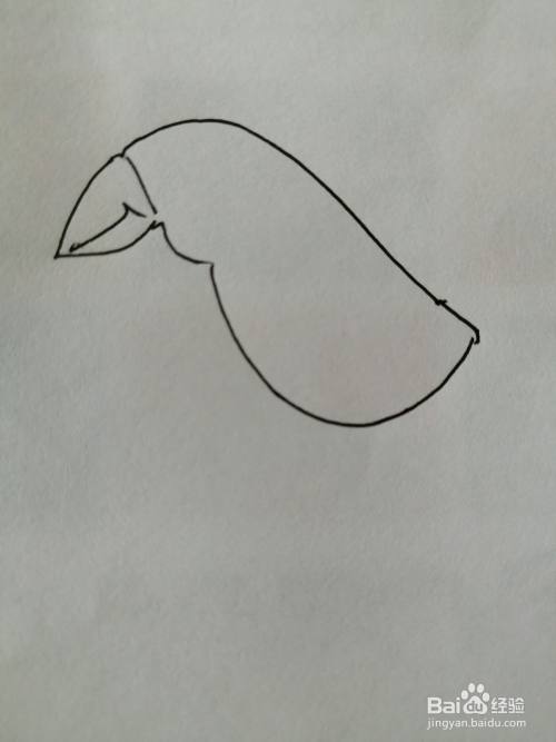 第一步,我们先画出可爱的小鸟的尖尖的小嘴巴,画法比较简单。