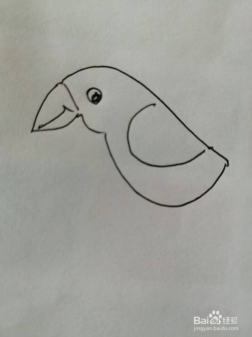 第四步,然后在可爱的小鸟的身体上画出翅膀,翅膀的画法也比较简单。