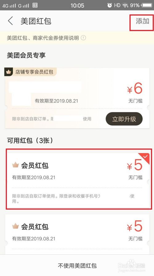 6、开通美团会员,可以在抵用卷里面选择会员红包。
