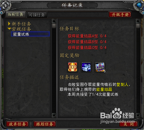 步骤三:收集完能量结晶后,徒弟在师徒管理员处提交任务,徒弟获得经验、绑银和幸运宝箱的奖励。
