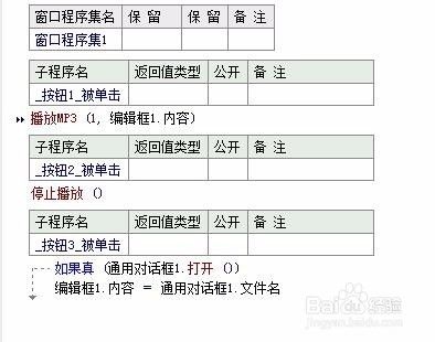 双击“播放音乐”,输入“播放MP3(1,编辑框1.内容)”
