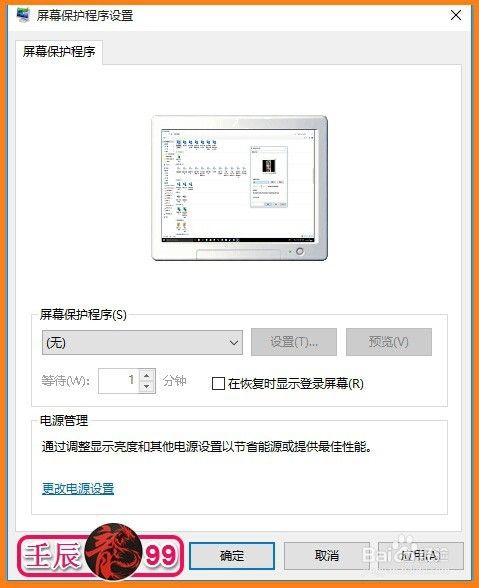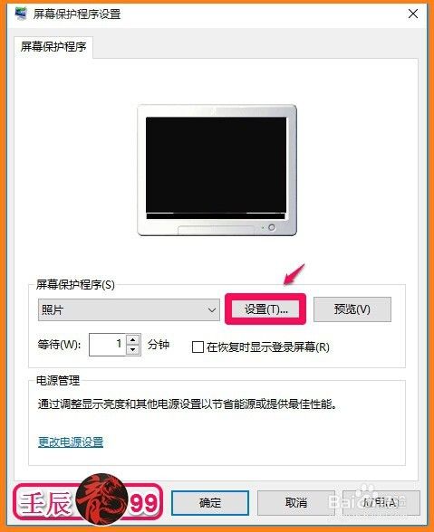 回到屏幕保护程序设置窗口,可见照片已经显示。我们设置等待时间(如果想看到立杆见影的效果,默认等待时间为1分钟),再点击:应用 - 确定;