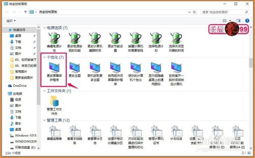 我们左键双击:完全控制面板图标,打开完全控制面板,在完全控制面板中找到个性化 - 更改屏幕保护程序并左键双击更改屏幕保护程序;